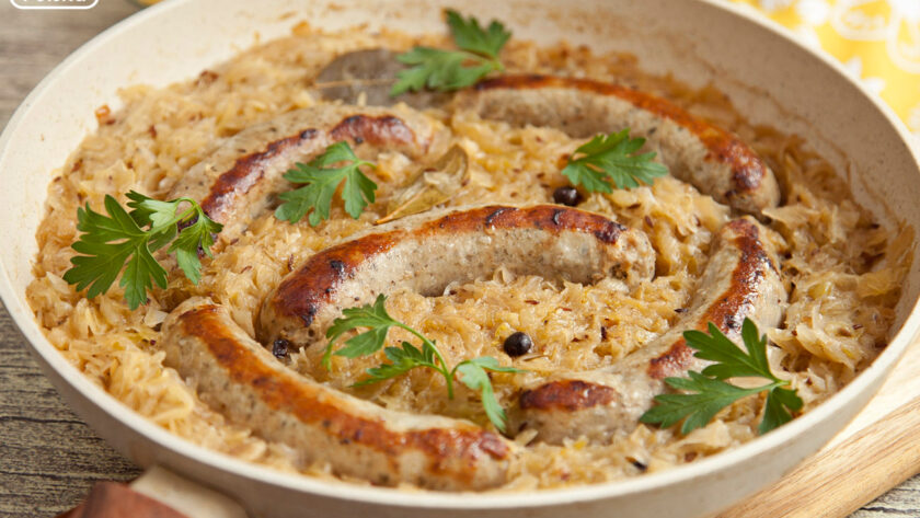 Konkretne, ale zarazem bardzo proste danie z białą kiełbasą i kapustą kiszoną w roli głównej rodem z kuchni niemieckiej. Świetne jako danie obiadowe albo zakąska do piwa.