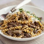 - W międzyczasie na oleju (można też użyć domowego smalcu) przesmaż drobno posiekaną cebulę. Gdy się zrumieni, oprósz mąką i od razu dokładnie wymieszaj, aby całkowicie połączyła się z tłuszczem.