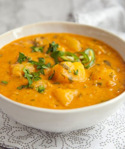 Pogoda taka, że postanowiliśmy ugotować coś rozgrzewającego i sycącego, ale bez mięsa. Tak przypomnieliśmy sobie o świetnym przepisie na kartoflankę curry. Pyszna jest ta zupa …