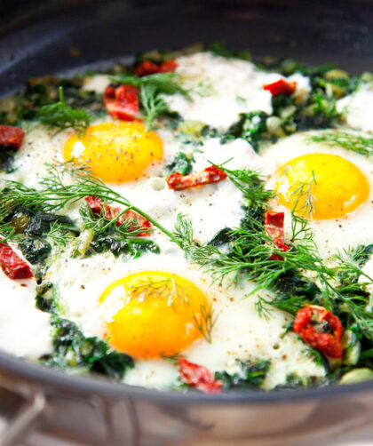 Szakszuka to tradycyjna bliskowschodnia potrawa z jajek i pomidorów, którą przeważnie je się na śniadanie – genialna w swojej prostocie, przez co robi kulinarną karierę …