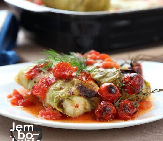 Gołąbki wagi piórkowej. Z kaszą, kurczakiem, zapieczone z pomidorkami