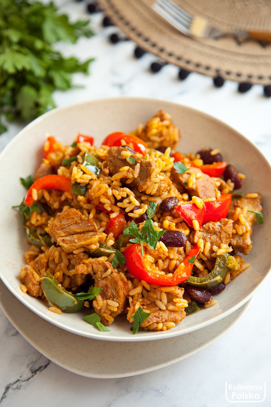 Karkówka najpierw dusi się z warzywami, potem mieszamy ją z ryżem, który przenika wszystkimi smakami. To danie lubią u nas wszyscy.