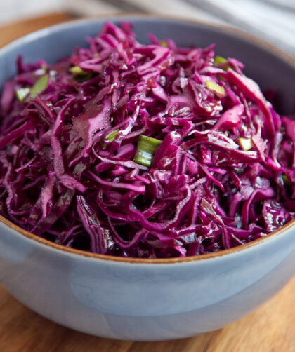 Idealnie sprawdza się jako dodatek obiadowy, szczególnie dobrze pasuje do dań mięsnych. Dzięki odrobinie chrzanu jest bardzo wyrazista, dlatego ta surówka z czerwonej kapusty posmakuje …