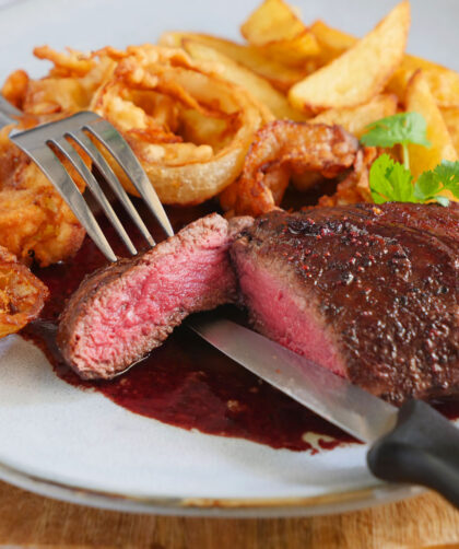 Mięso usmażone tak jak lubimy, wyrazisty sos, chrupiące krążki cebulowe i frytki – to zdecydowanie nasz ulubiony sposób na podanie steku wołowego, który podpatrzyliśmy w …