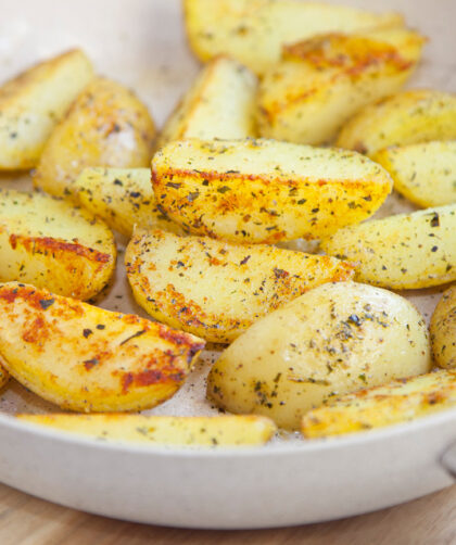 Dzięki prostej sztuczce ze smażeniem na wodzie te pyszne ziemniaczki zrobisz na jednej patelni – nie trzeba ich wcześniej osobno obgotowywać. Wychodzą rumiane, pachnące ziołami …