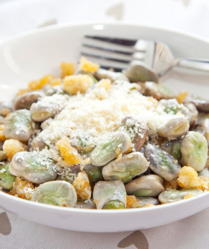 Nieprawdopodobnie pyszny sposób na przyrządzenie bobu. Z dodatkiem masła, czosnku i dojrzewającego sera jest po prostu genialny. Przepis na bób z masłem, czosnkiem i serem …