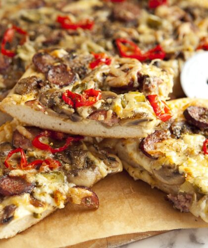 Na grubym i puszystym cieście, z dużą ilością dodatków, niektórzy lubią ją bardziej niż włoski oryginał, my nazywamy ją domową pizzą po polsku. Jak zwykle …