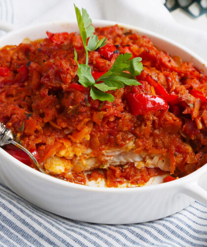 W tym przepisie wideo przygotowujemy krok po kroku naszą ulubioną rybę po grecku. Kawałki dorsza najpierw usmażyliśmy w delikatnym cieście naleśnikowym, następnie zapiekliśmy w wyrazistym sosie warzywnym. Jest świetna zarówno na ciepło, jak i po schłodzeniu. Nie wyobrażamy sobie bez niej świątecznego stołu.