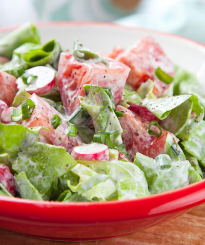 Bardzo lubimy tę prostą sałatkę ze świeżych warzyw ze śmietaną. Robi się ją w wielu domach, a najlepiej smakuje wiosną i latem. Przepis na sałatkę …