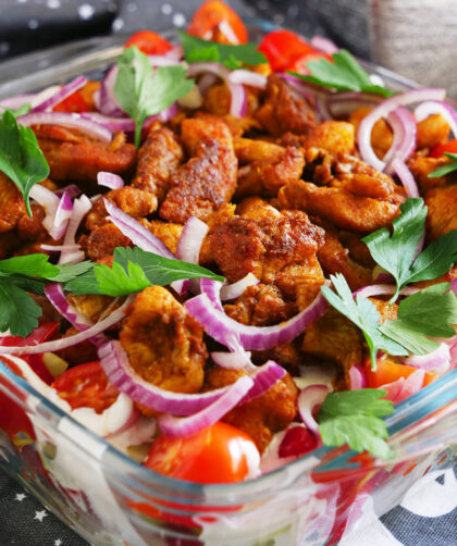 Większość przepisów każe przygotowanie tej sałatki zacząć od wyłożenia kurczaka. Sprawdziliśmy – to nie najlepszy pomysł. Ciepło uchodzi do góry, powodując, że sos rzednie, a …