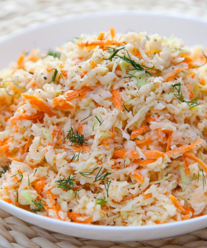 Prosta sałatka z kapusty i marchewki jest znana na całym świecie. Idealnie sprawdza się jako dodatek obiadowy do mięs i ryb. Coleslaw zrobiony według klasycznego …