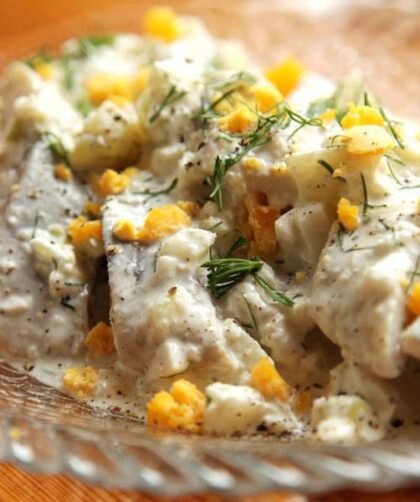 W delikatnym sosie chrzanowym z kruszonką z żółtka. Jeśli szukasz przepisu na wielkanocną sałatkę śledziową, ta będzie idealna. Składniki: 400 gramów wymoczonych matiasów, mała cebula, …