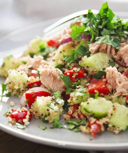 Bardzo lubimy takie sałatki – robi się je niezwykle łatwo i właściwie stanowią kompletny posiłek. Z komosą i tuńczykiem jest świetna na szybki lunch w …
