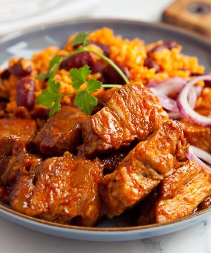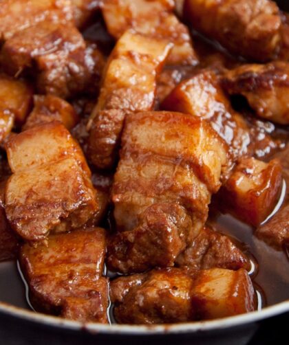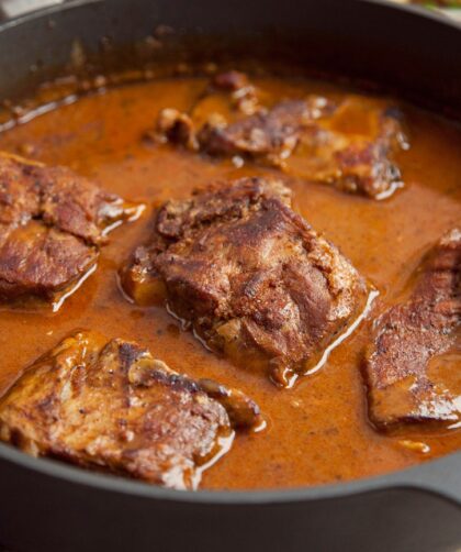 To nie jest zwykły gulasz. Mięso najpierw się marynuje, potem dusi w całości i na koniec po pokrojeniu miesza z aromatyczną glazurą. Wychodzi niesamowicie smaczne. …