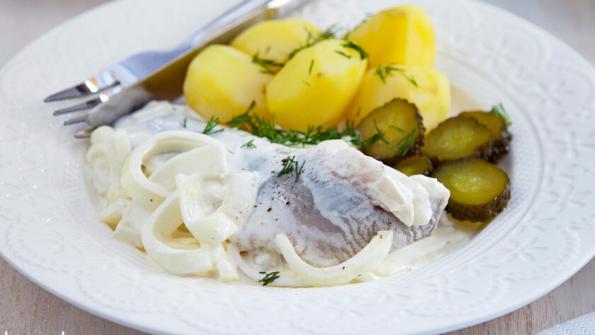 Przepis na śledzia w śmietanie z gotowanymi ziemniakami